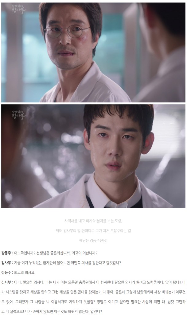 김사부는 필요한 의사가 되어야 한다고 이야기 합니다. 필요로 하지 않으면 아무도 귀를 기울이지 않을 것이고, 소용없는 존재가 되고 말것이며, 아무것도 이룰 수 없다는 가장 원론적이며 기초적인 이야기를 하는 것입니다.