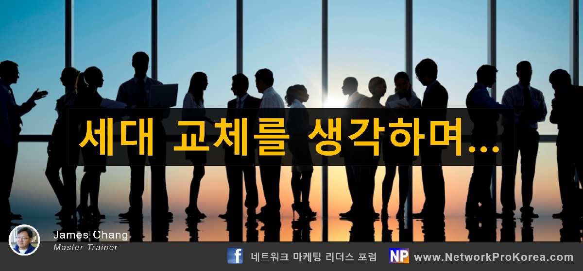 대한민국의 네트워크 업계 또한 세대 교체를 이야기 합니다. 물론 좋은 세대교체는 업계의 선배요 리더가 가진 책임입니다. 하지만 그것은 연금성 소득이라는 것과도 직결된 미래 소득 가능성의 문제이기도 합니다. 사실 세대교체가 제대로 이루어지지 않으면 그렇게 이야기하던 연금성 소득은 존재하지 않을 것이기 때문입니다. 수만평의 땅을 가지고 있어도 경작을 할 사람이 없으면 수확은 거둘 수 없다는 것과 같은 이치입니다.