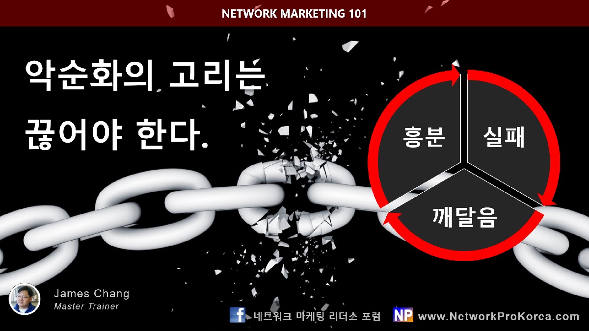 누구에게나, 어떤 일에나, 어떤 사업에나 있을 수 있는 일! 하지만 하루 빨리 끊어야 하는 고리이고 벗어나야 하는 늪이 있습니다. 그것은 바로 “흥분-실패-깨달음”이 반복되는 악순환의 고리이고 그것은 특히나 네트워크 마케팅에서 사업자들이 종종 빠지게 되는 늪이기도 합니다.