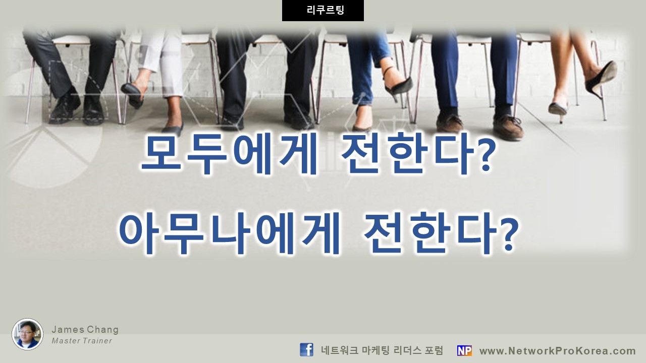 네트워크 마케팅의 장점은 “나는 내가 일하고 싶은 사람과 일할 수 있다!”는 것입니다. 그렇다면 어떤 사람과 일하고 싶은지를 먼저 정확히 알아야 하지 않을까? 라는 질문을 해보게 됩니다. 많은 경우 어떤 사람과 일하고 싶은지를 몰라 시간과 에너지를 낭비하고 있기 때문입니다.