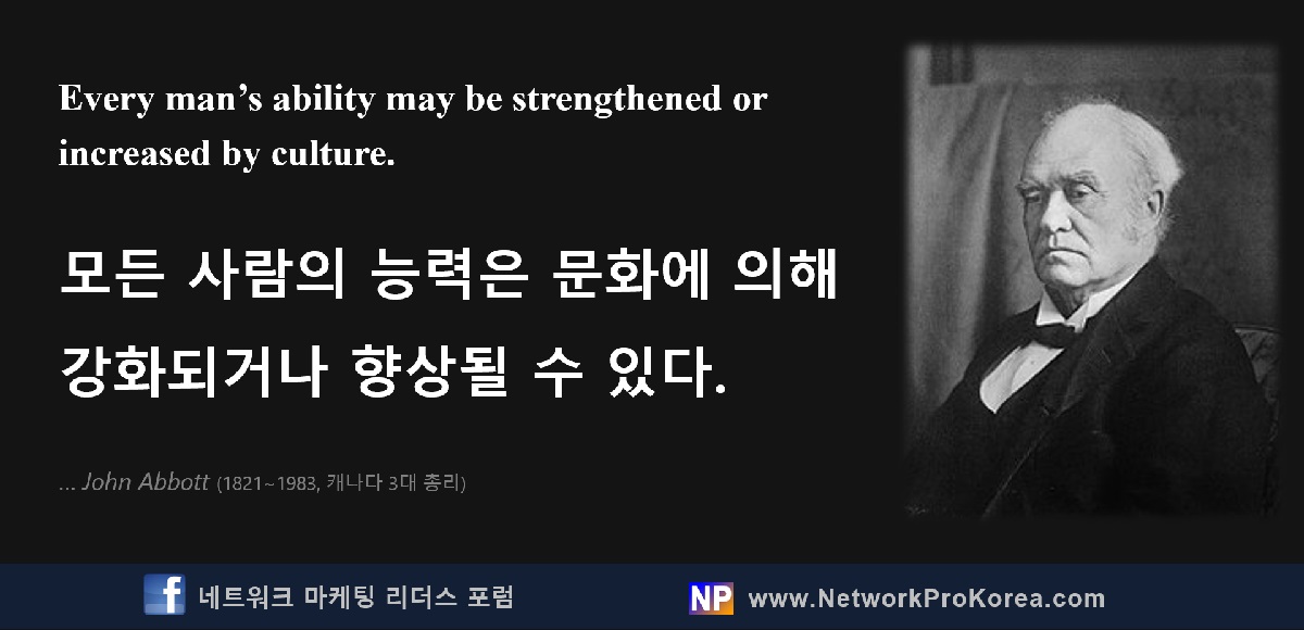 “모든 사람의 능력은 문화에 의해 강화되거나 향상될 수 있다.”는 캐나다의 3대 수상을 지낸 존애봇의 말처럼 문화는 구성원들의 능력을 강화시키거나 향상시킬 수 있습니다. 하지만 동전의 앞뒤면이 있듯이 좋은 문화는 좋은 능력을 강화하거나 향상시킬 것이며, 나쁜 문화는 그 반대의 결과를 만들어 낸다는 것을 우리는 보아왔고 알고 있습니다. 그래서 좋은 문화는 좋은 미래를 만드는 필수적 조건이 될 것입니다.