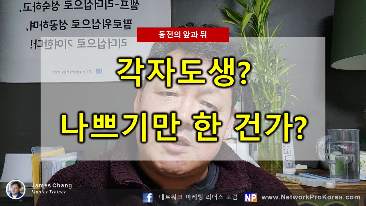 당신은 각자도생이 가능한 사람이 되어야 한다. 군대가 정예부대를 필요로 하듯, 모든 조직은 정예의 팀을 필요로 한다. 정예의 팀 멤버는 각자도생이 가능한 사람들이다. 성공한 사람들을 보라! 그들은 각자도생이 가능한 사람들이다. 물론 그들에게도 도움이 되는 파트너들이 있었다. 하지만 그 사람이 각자도생이 불가능한 사람이었다면 그 파트너들이 무엇을 보고 그를 따랐을까? 각자도생은 즉 그 사람의 역량을 의미한다. 그래서 그 사람옆에 사람들이 있고 그를 리더라며 따르는 것이다.
