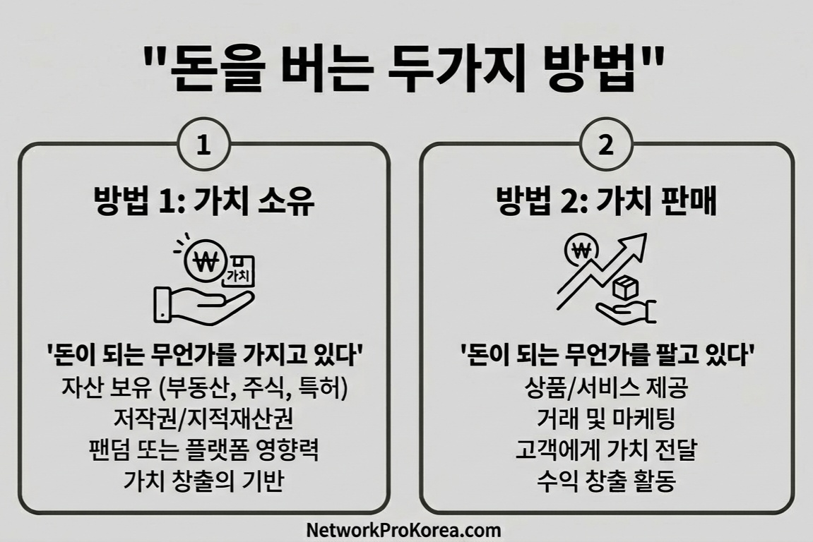 수많은 수익 창출 방법이 있지만, 결국 본질을 꿰뚫어 보면 딱 두 가지로 요약됩니다.