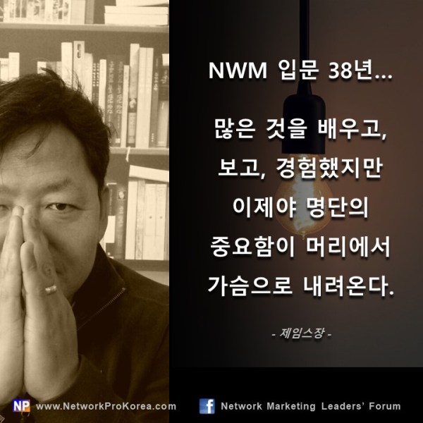 특히 네트워크 마케팅은 혼자의 게임이 아니라 많은 사람들과 함께 하는 게임이다. 그렇기에 과정이 나쁘면 피해자가 나오게 된다. 그리고 그 결과로 만들어지는 결과는 성공이 아니라 범죄가 될 수 있다. 그것은 네트워크 마케팅 업계 전체의 망신이고 이미지 추락의 결과를 만들어 내고 후배들에게도 못할 짓을 하는 결과라는 미래 파괴적 행위 또한 되는 것이다. 그 정도 분별력은 알고 일하는 리더들이 더욱... Continue Reading →