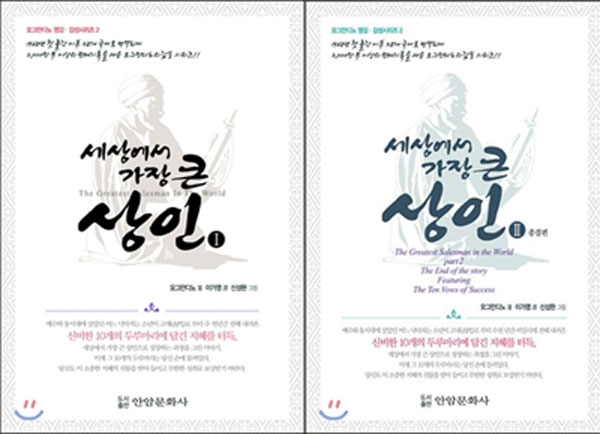 세상에서 가장 큰 상인 1 & 2 오그 만디노 저 | 안암문화사 2015년 YES24.com 참조 글... 1968년 첫 출간 이후 28개 국어로 번역되어 2,000만 부 이상의 판매 기록을 세운 오그만디노 감동 시리즈 !! 이 책을 읽는 분을 위하여 《세상에서 가장 큰 상인》은 1968년 첫 출간된 이후 지금 까지 출판계의 경이로운 기록이 되어오고 있는 작품입니다. 책이 장정본으로 250만부나 팔린다는 것... Continue Reading →