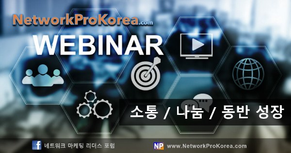 NetworkProKorea.com의 첫 웨비나가 아래와 같이 진행됩니다. 사회는 포스터에 적힌 것과 같은 네트워크 마케팅에 향한 부정적인 견해들을 가지고 있습니다. 물론 잘못된 방법으로 사업을 진행하여 이미지를 실추시키는 분들도 분명 있습니다. 하지만 올바르게 일을 하려는 우리는 아래 견해에 대한 좀 더 긍정적인 접근이 필요합니다. 이것은 우리의 자부심과 관계된 문제입니다. 이것을 나누며 함께 생각해 보는 기회를 가져보고자 합니다. N.M.을... Continue Reading →