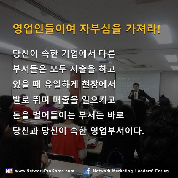 더 나아가 생각해 보면 다른 모든 부서들이 지출을 하고 있을 때 영업부는 현장에서 고객과 부딪히며 매출을 일으키고 있는 부서인 것이다. 즉 기업에서 돈을 벌어들이는 부서는 바로 영업부인 것이다.