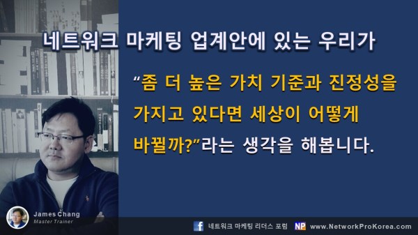 네트워크 마케팅에서 성공을 원하는가? 단순히 먹고사는 단계, 박수나 받고 자아 도취되는 직급자로서의 단계를 넘어 세상에 변화와 충격으로 다가가는 영향력을 가진 리더가 되고 싶다면 꼭 기억하기 바란다. 네트워크 마케팅은 당신의 배경을 요구하지는 않지만 당신은 파트너들과 후배들에게 배경이 될 만한 리더는 되어야 한다.