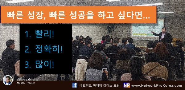 빠른 성장! 빠른 성공! 누구나 원하는 것입니다. 특히 네트워크 마케팅을 그 도구로 선택한 분들은 자기 동기부여가 강하고, 미래에 대한 꿈이 있기에 더욱 그 마음이 강할 것입니다. 물론 여러 노하우가 있겠지만 네트워크 마케팅에서 가장 기초가 되는 한가지를 나누어 봅니다. 이것이 되지 않으면 어차피 멘토링, 코칭, 상담, 조언 등이 필요없게 될 것이기 때문에 특히나 중요한 기초중의 기초일... Continue Reading →